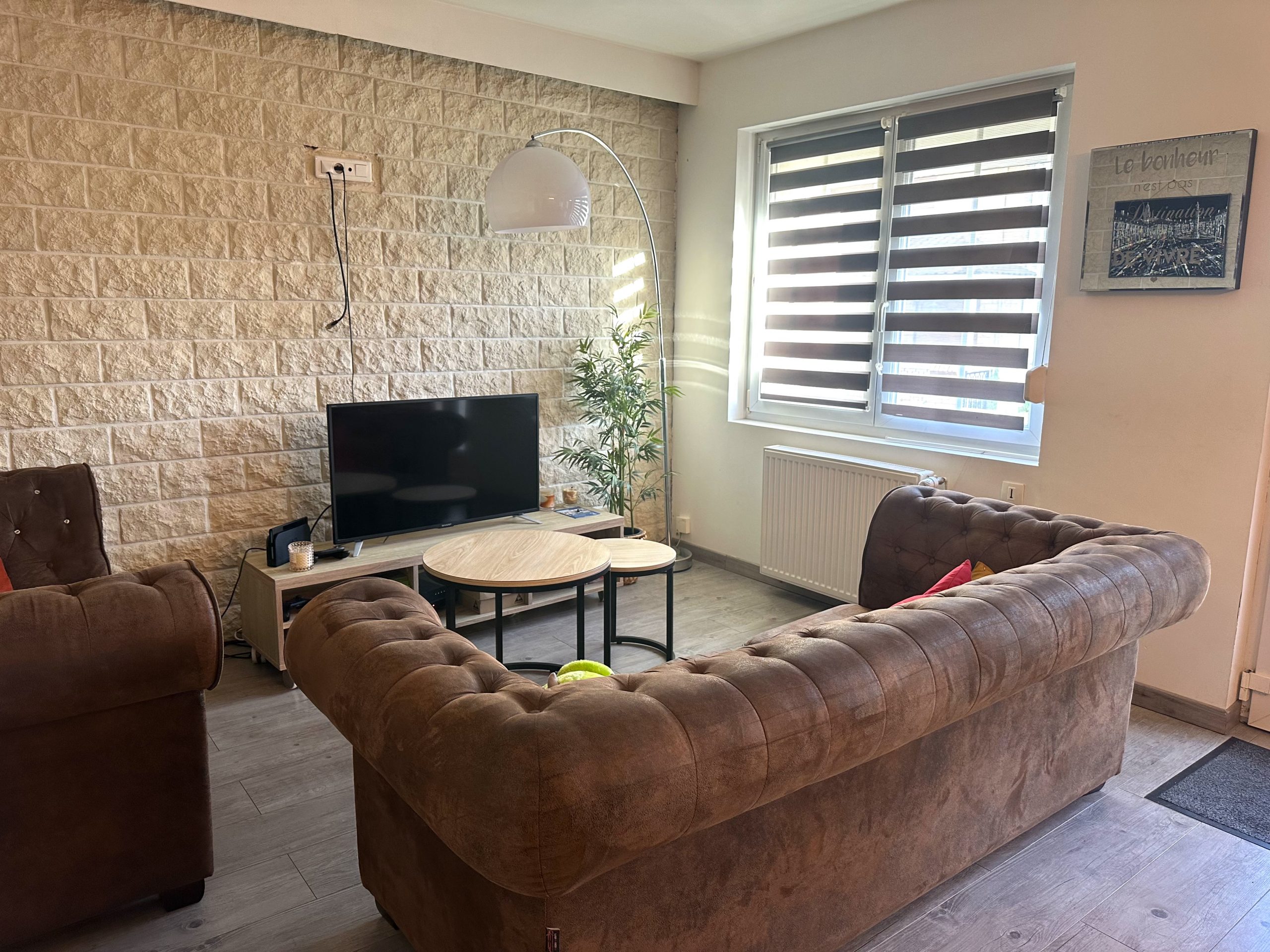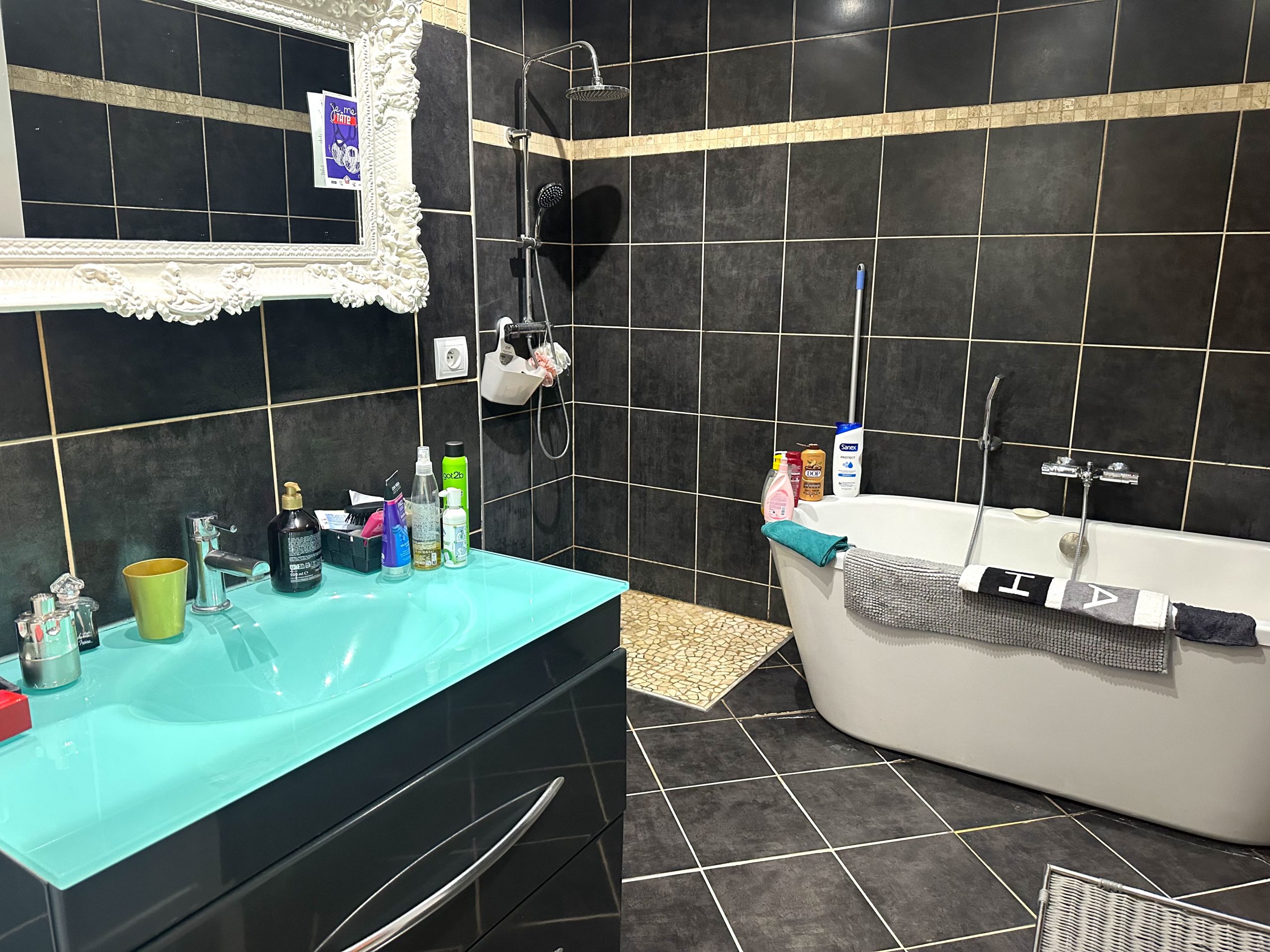 Au rez de chaussée, vous découvrirez un salon/séjour lumineux, une cuisine équipée, ainsi qu’une salle de bain moderne avec baignoire et douche à l’italienne.